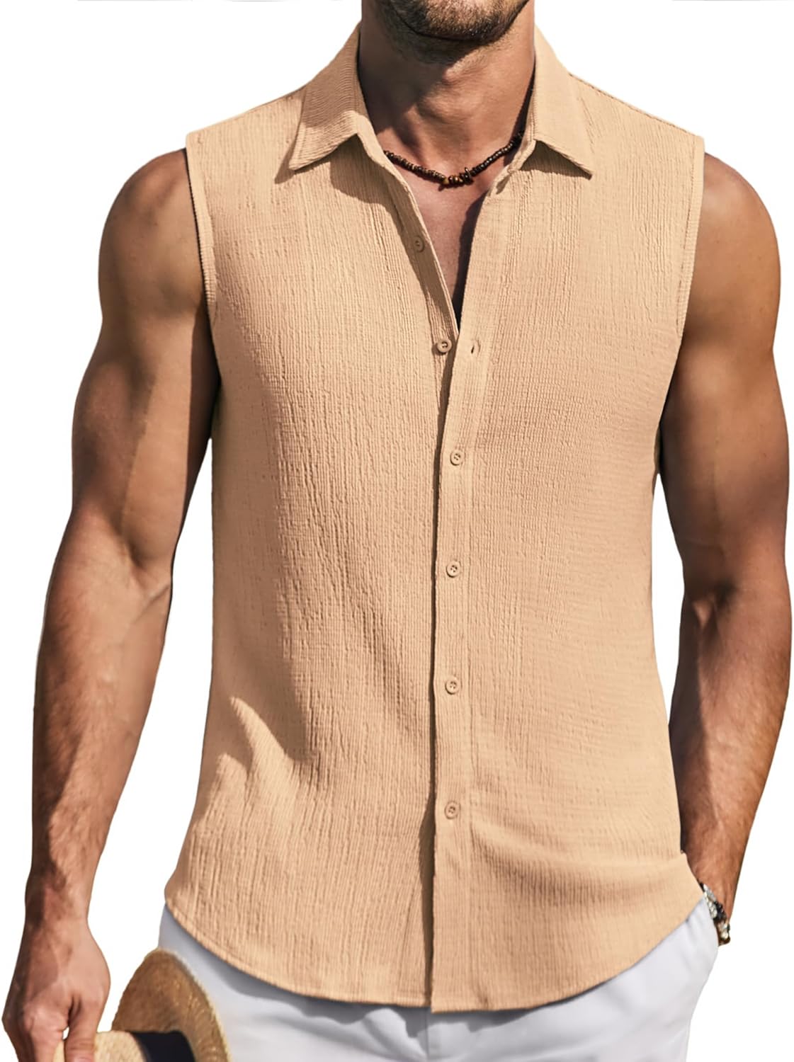 COOFANDY Men's Summer Sleeveless Shirts Beach Knit Tank Top Button Up Casual Tank Shirt Vacation Tops