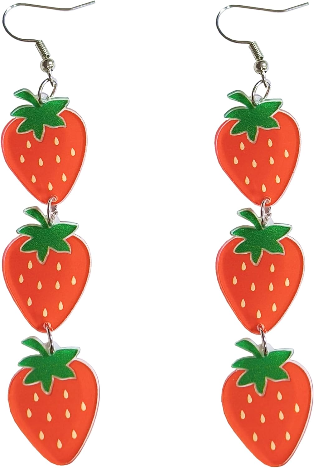 Funny Acrylic Strawberry Earrings Lovely Fruit Dangle Earrings Vintage Summer Vibe Sweet Strawberry Drop Earrings for Women Birthday Holiday Jewelry Gifts
