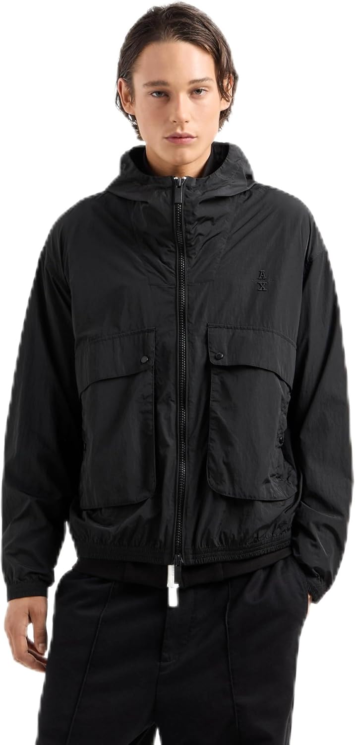 Armani Exchange mens Letterman Badging Hooded Zip Up Windbreaker Jacket