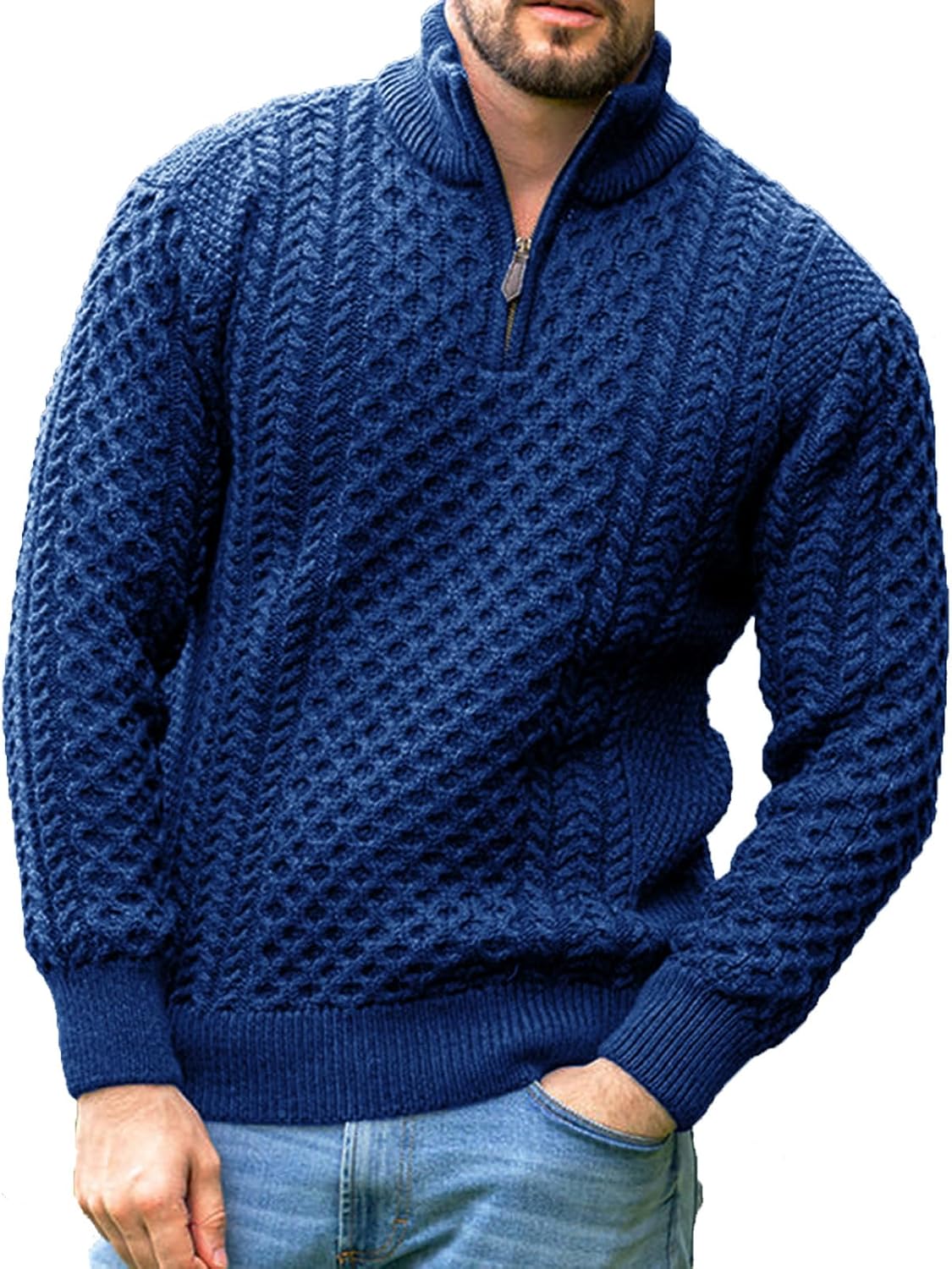 Men's Irish Fisherman Sweaters Cable Knit Half Zip Jacquard Pullover Sweater