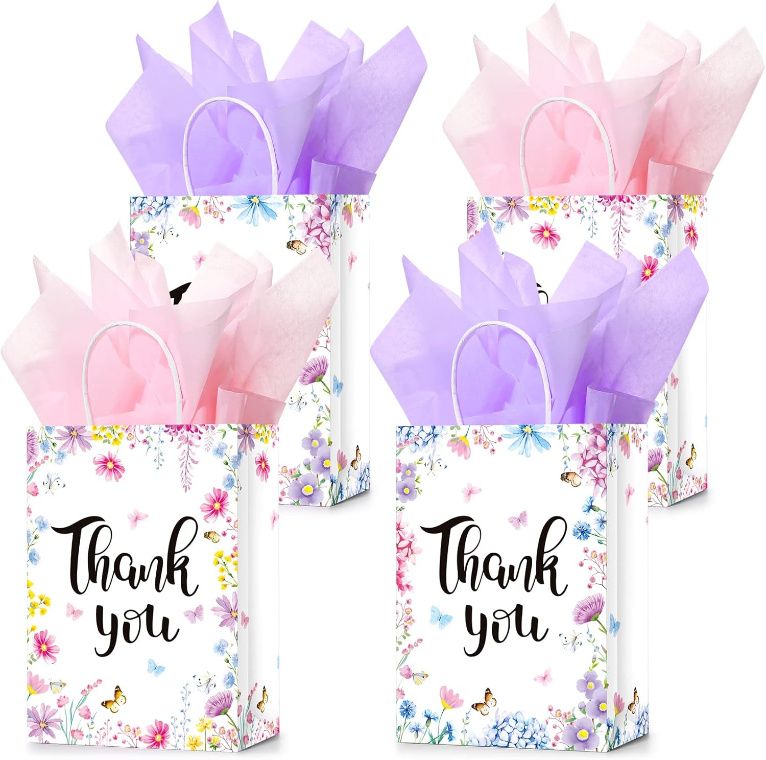 Tinlade 30 Pcs Thank You Gift Bags with Tissue Paper Gold Thank You Wedding Bags with Handle for Graduation Business Shopping Wedding Shower Party Favors(Floral Color)