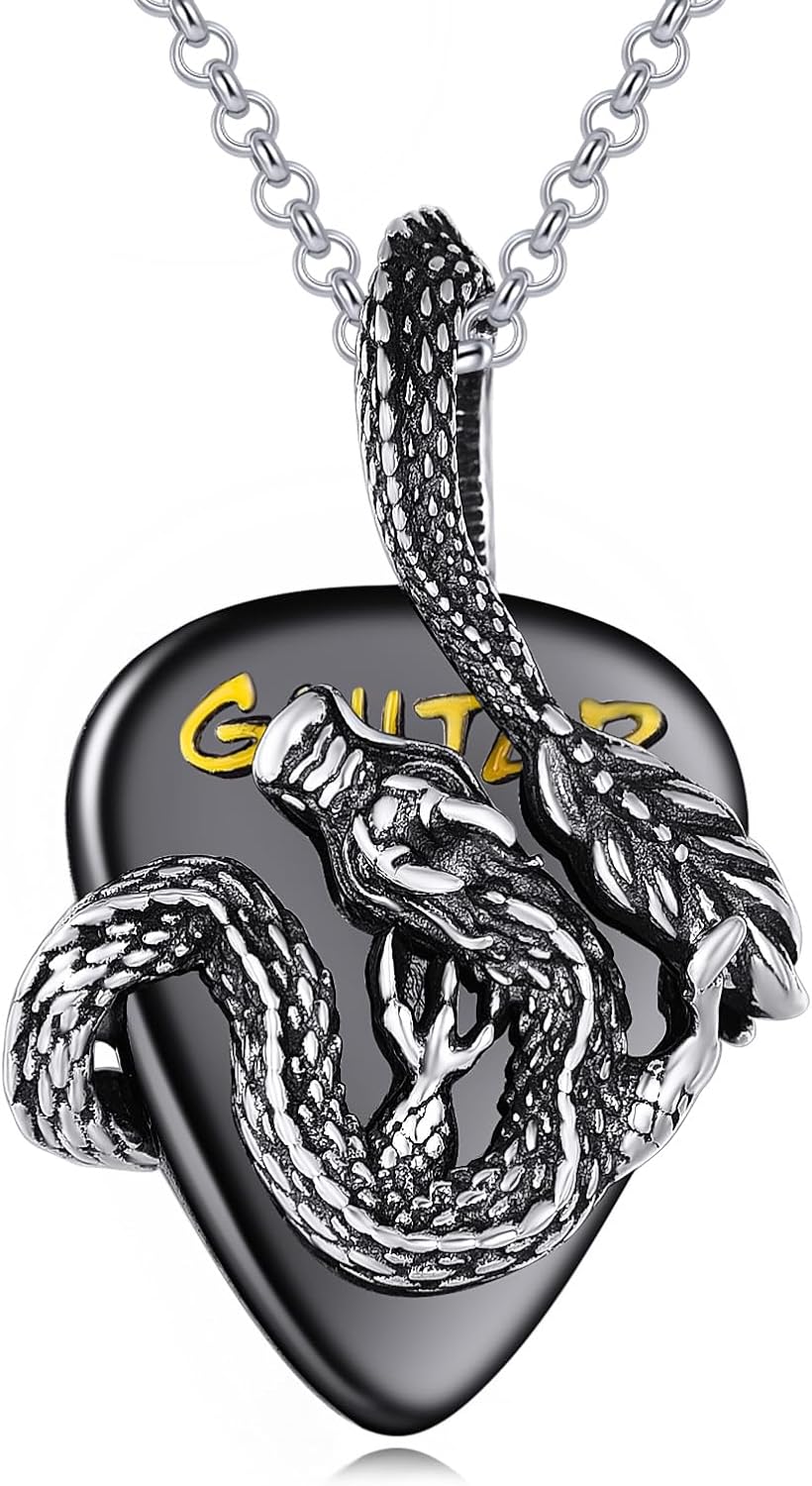 POPLYKE Guitar Pick Dragon Necklace Sterling Silver Music Dragon Jewelry Gift for Women Men