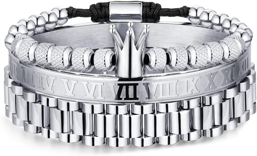 WFYOU Imperial Crown Bracelets for Men 18kt Gold Bracelet Cubic Zirconia Beads Bracelets Cross Bracelets Charm Men Luxury Gift