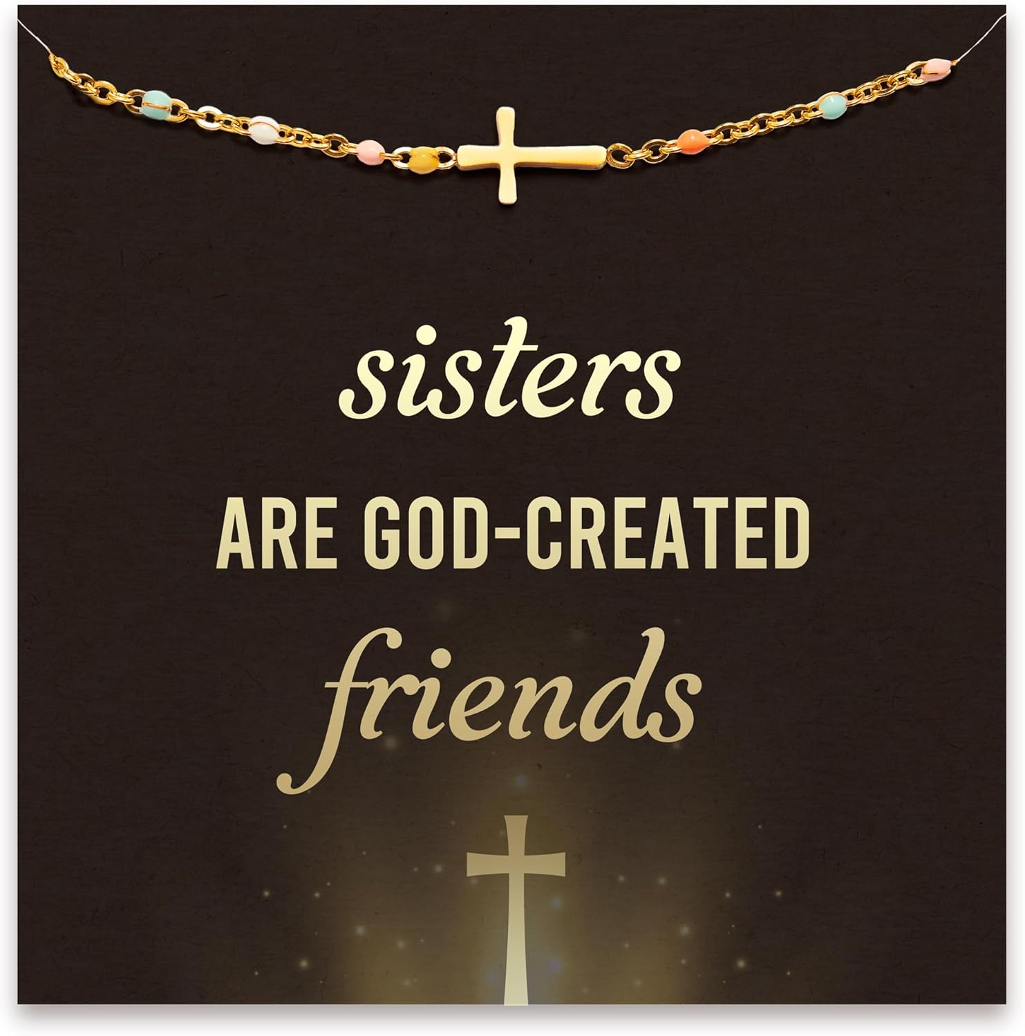 STORYJEWELLERY Sister Gifts, Sister Bracelet, Birthday Valentines Day Gifts for Sisters, Wave Bracelet, Cross Bracelets, Christian Jewelry