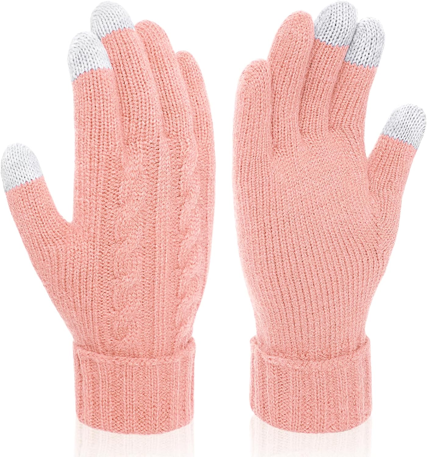 Wandx Womens Winter Gloves, Warm Knit Gloves for Cold Weather Long Cuff Touch Screen Gloves for Women Men