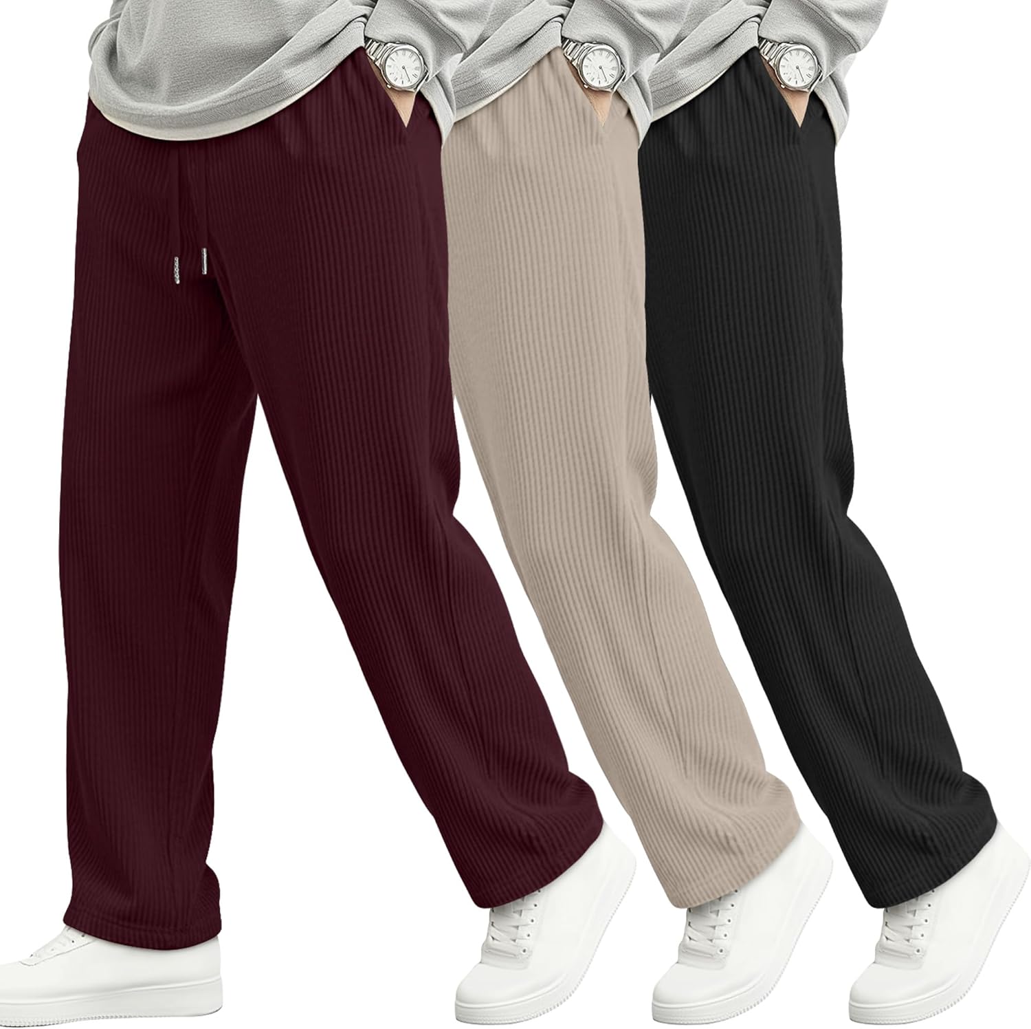 Neer 3 Pack Men's Corduroy Pants Causal Straight Leg Sweatpants Loose Drawstring Elastic Waist Baggy Lounge Pants Pockets