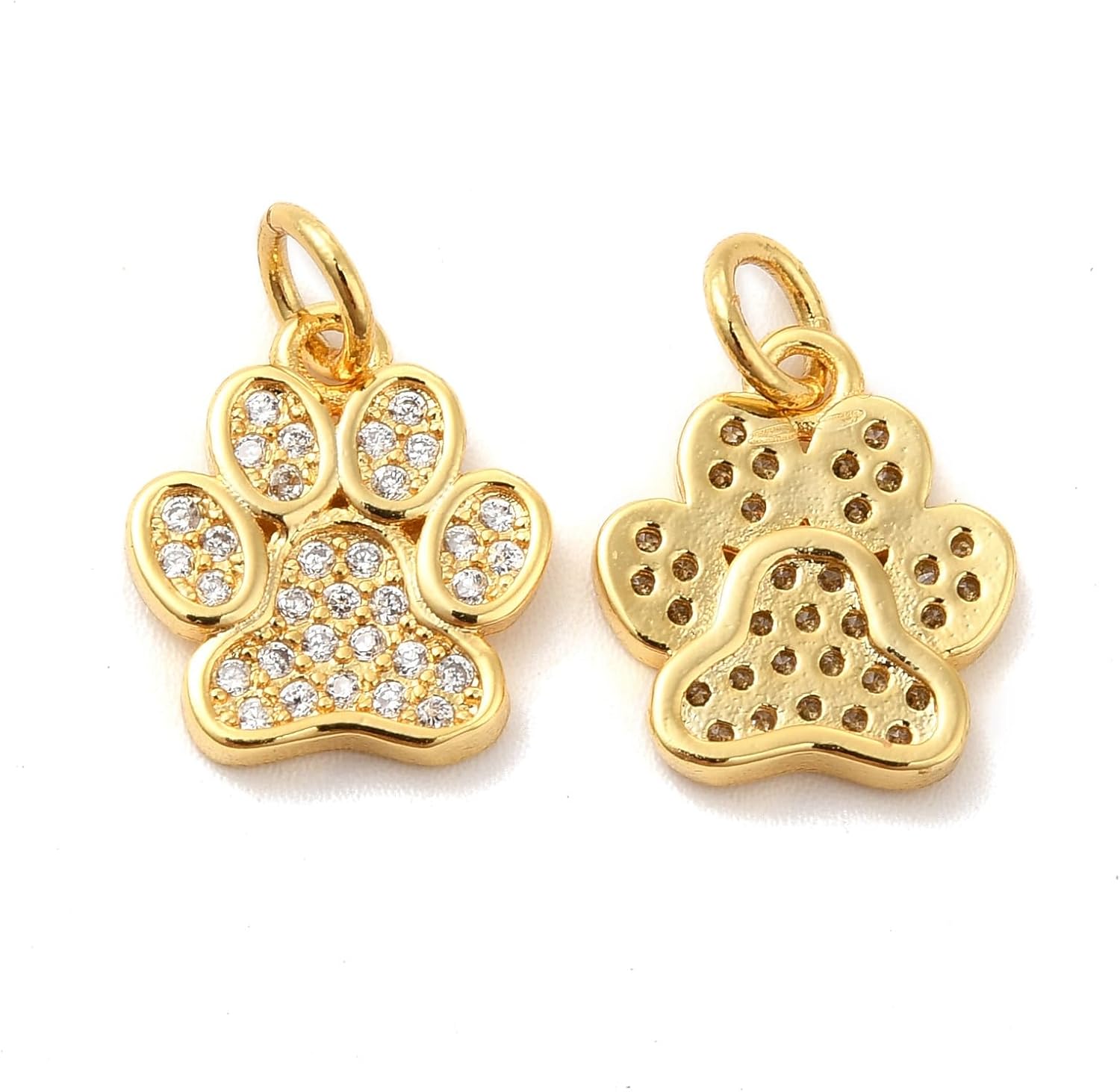 KitBeads 10pcs Cubic Zirconia Dog Paw Charms Real 18K Gold Plated Cute Animal Cat Foot Print Charms for Jewelry Making Bracelets Necklace Earrings Bulk