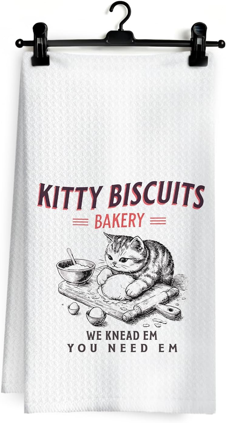 Funny Cat Baking Kitchen Dish Towels, Cat Lover Mom Lady Gifts, Gifts for Baking Lovers, Cute Kitty Biscuits Hand Tea Towels for Bakery Kitchen Decor, 16x24 Inch