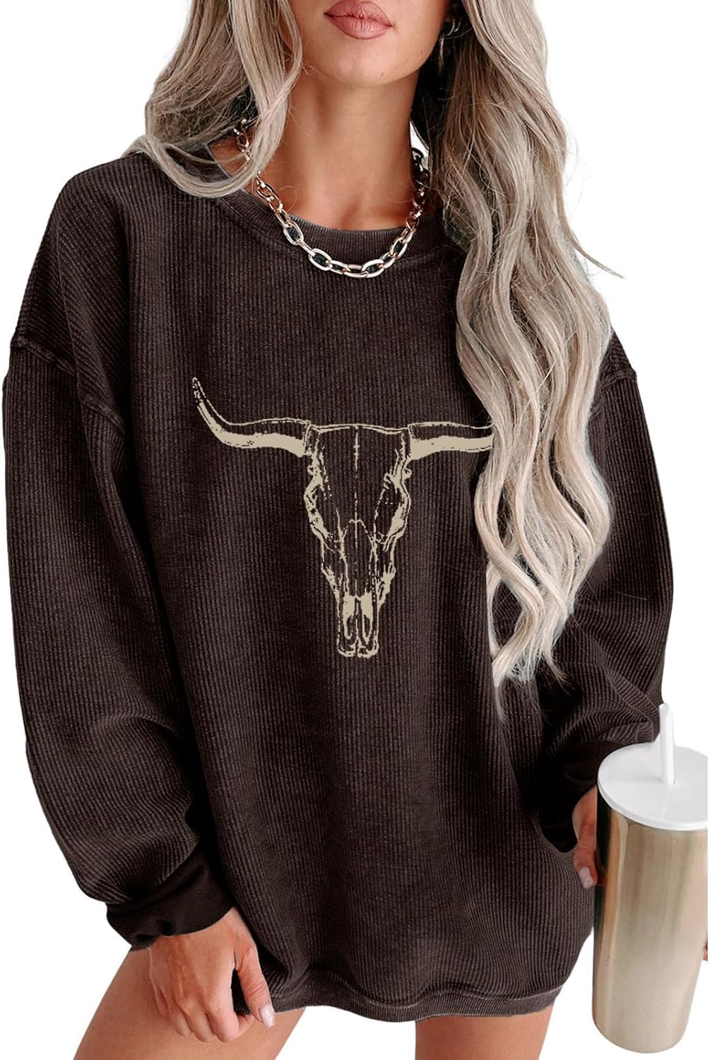 UNIQUEONE Boho Cow Skull Sweatshirt Women Cowgirl Shirt Rodeo Western Country Concert Outfits Nashville Graphic Pullover Tops