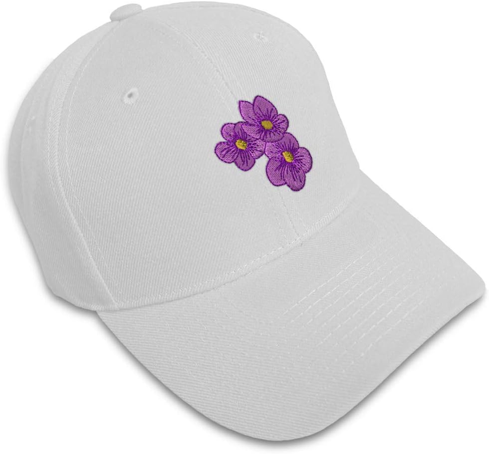 Custom Baseball Cap African Violets Embroidery Flowers and Plants Acrylic Dad Hats for Men & Women White Design Only