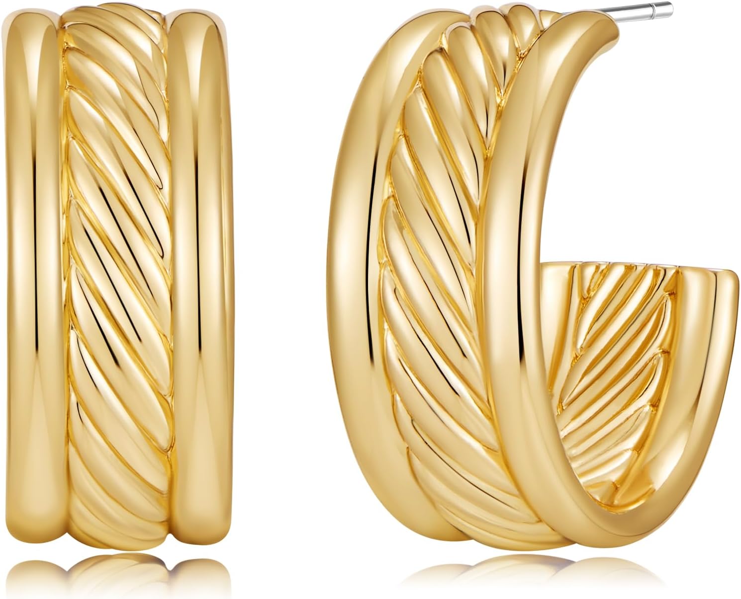 Two Tone Hoop Earrings for Women Silver and Gold Plated Twisted Cable Open C Hoops Chic Hypoallergenic Earring Mixed Metal Jewelry