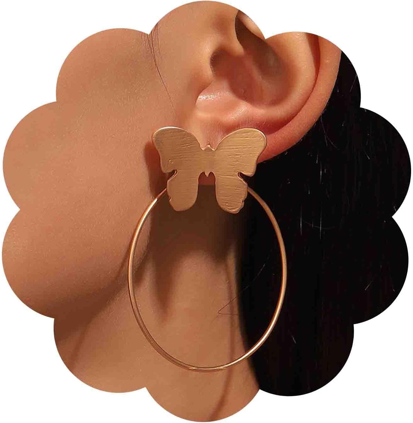 Boho Butterfly Circle Earrings Large Circle Drop Earrings Metal Gold Butterfly Stud Earrings Circle Hoop Dangle Earrings Statement Butterfly Earrings Jewelry for Women