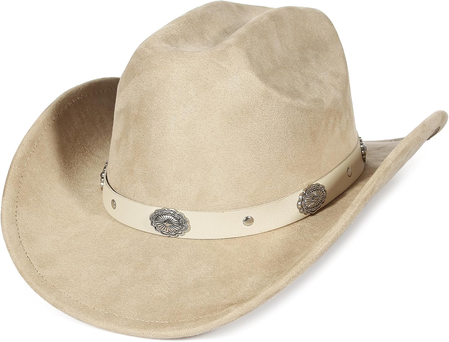 Western Suede Cowboy Hat for Women Men Classic Wide Brim Western Cattleman Cowgirl Hat