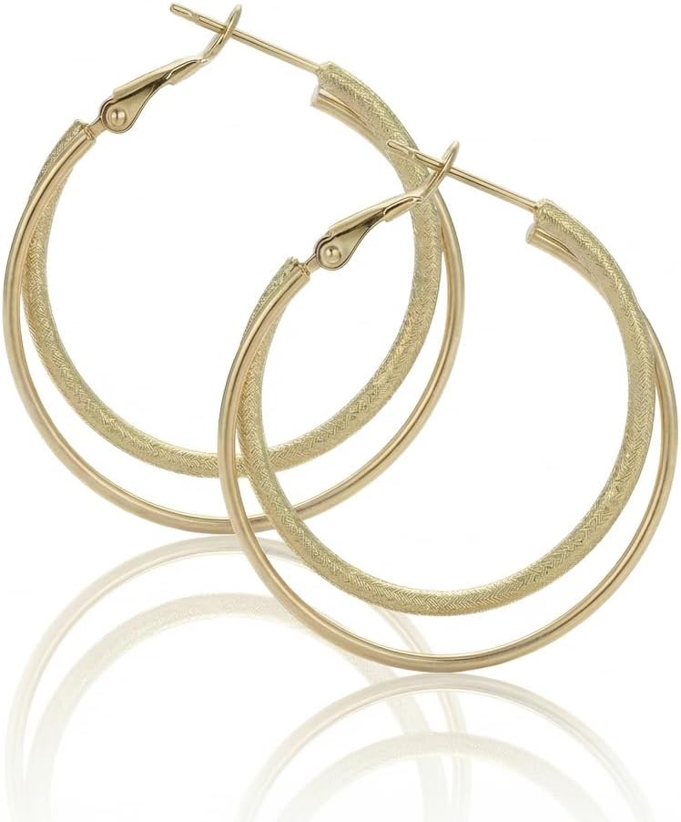 Elegant Gold Double-Layer Textured Large Hoop Earrings for Women, Matte & Shiny Mixed Circle Earrings, Retro Luxury Fashion Jewelry for Daily/Commute/Party