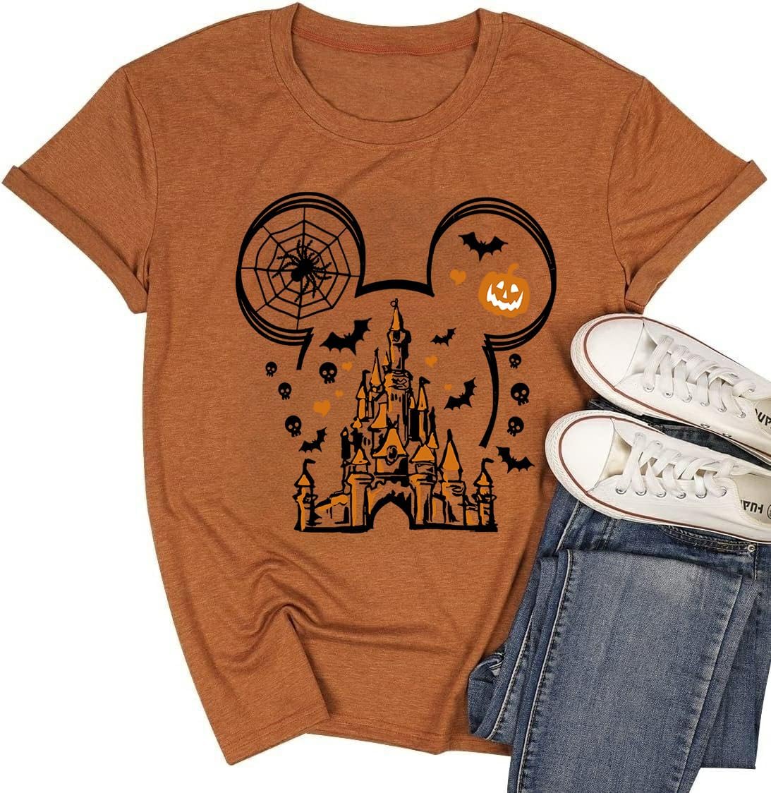 Halloween Shirts for Women Magic Kingdom Shirt Ghosts Spiders T-Shirt Halloween Party Funny Spider Web Graphic Tee Tops