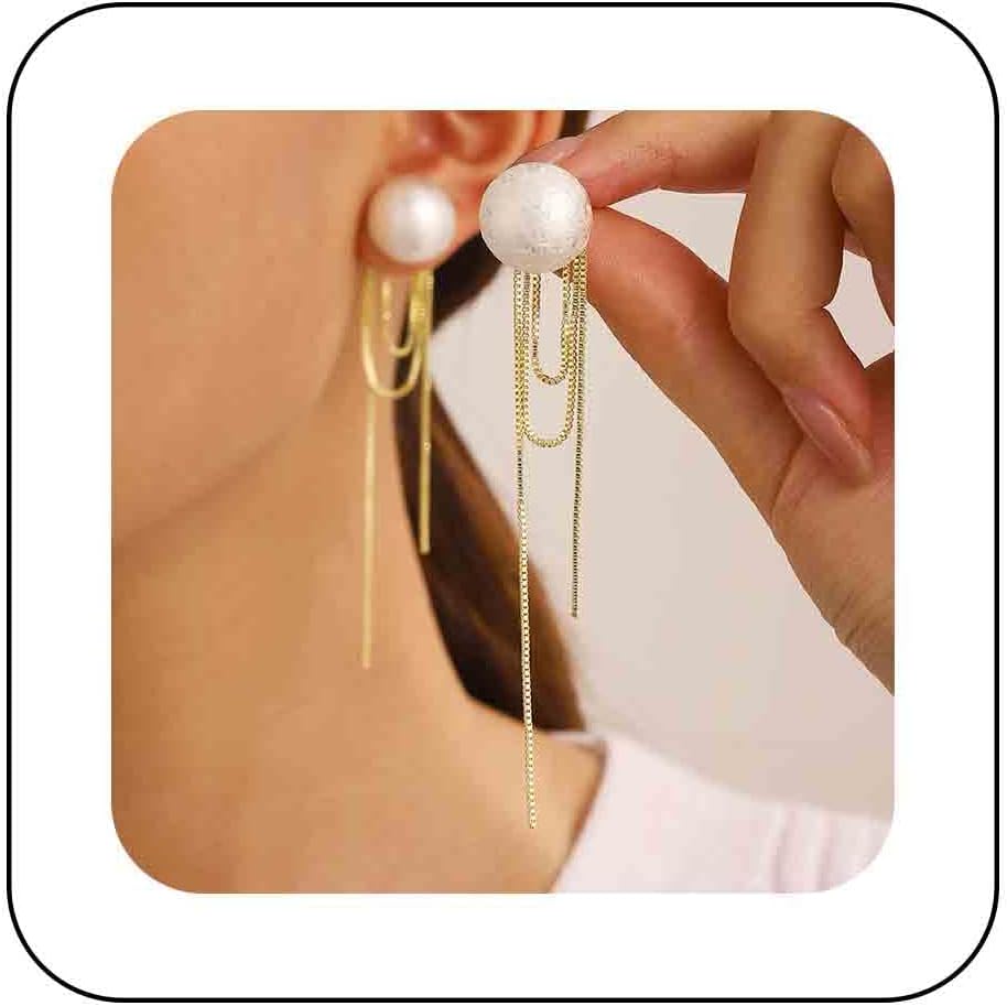 Bohemian Pearl Ear Jacket Earrings Gold Pearl Tassel Dangle Earrings Long Tassel Chain Drop Earrings Minimalist Pearl Tassel Earrings Jewelry for Women Gifts