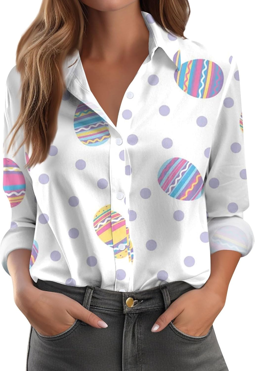 Valentines Tops for Women Button Down Shirts Heart Blouses Dressy Casual Lapel Collar Long Sleeve Soft Comfy T Shirt