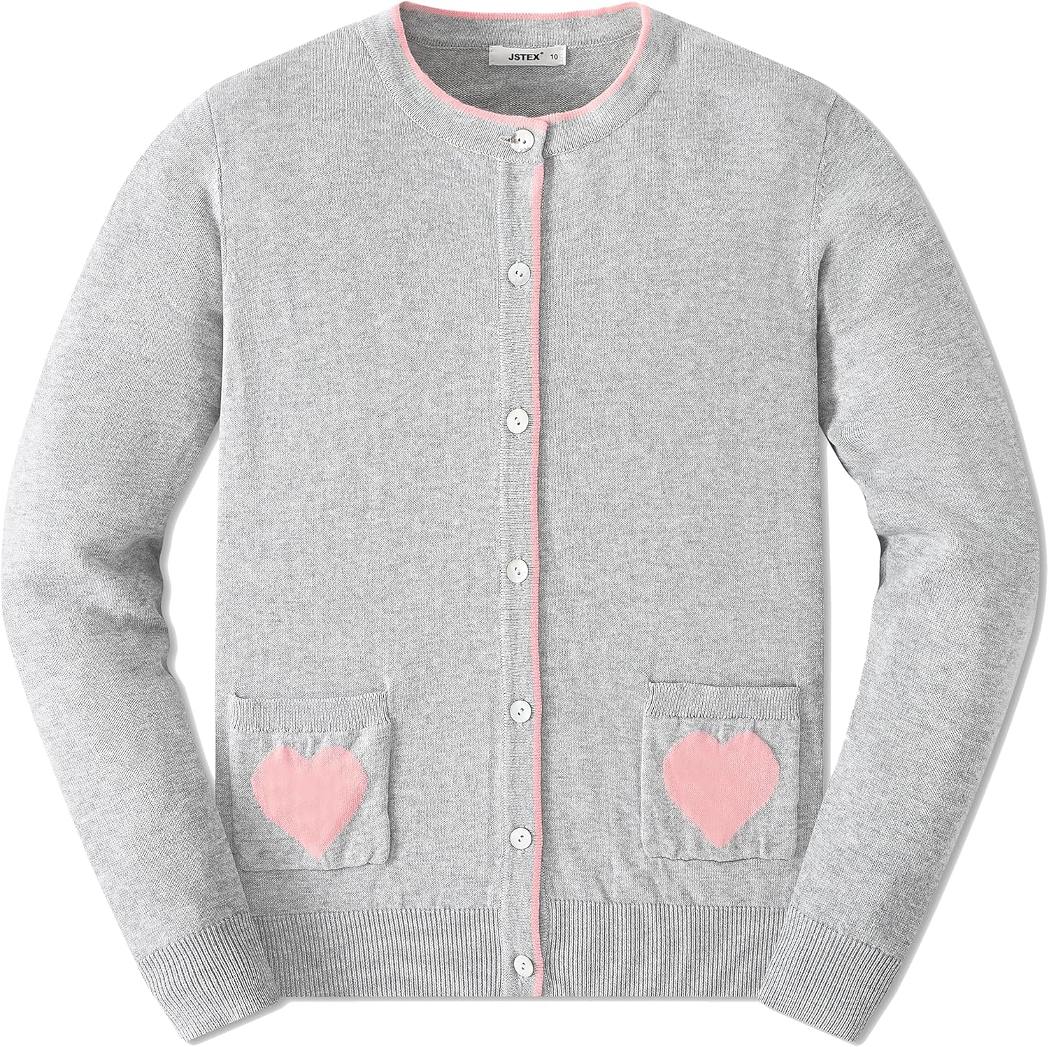 JSTEX Girls Cute Cardigan 100% Cotton Knit Kids Cardigan Long Sleeve Crew Neck Button Sweaters for Girl Size 4-14