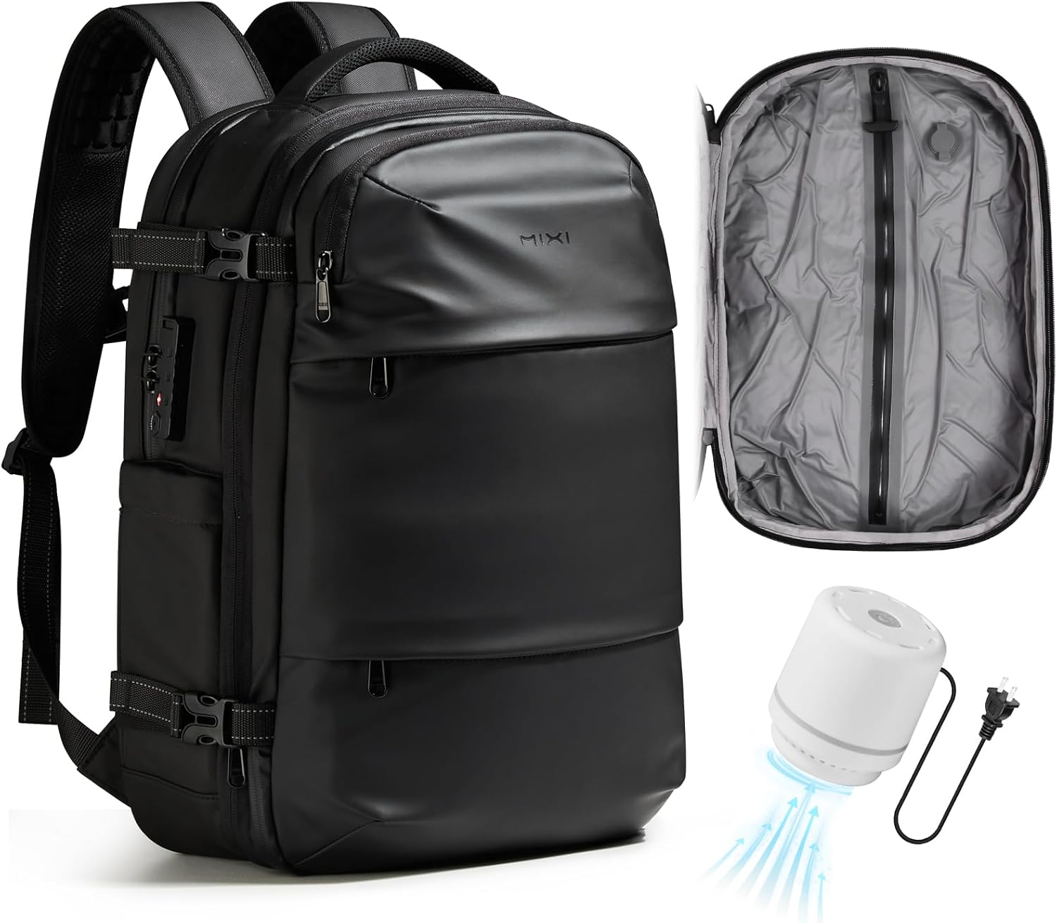 mixi EliteSeries 60L Vacuum Travel Backpack with Pump, Expandable Compression Carry On Luggage Bag Waterproof TSA Lock Suitcase, Black