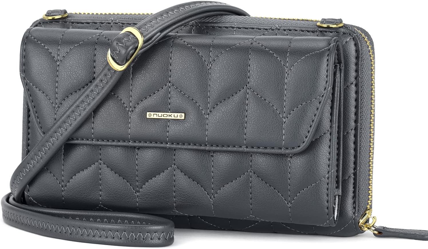 nuoku Womens RFID Wallet Purse Wristlet Crossbody Clutch with Zip Around 2 Strap | RFID, Zip Around, 2 Strap
