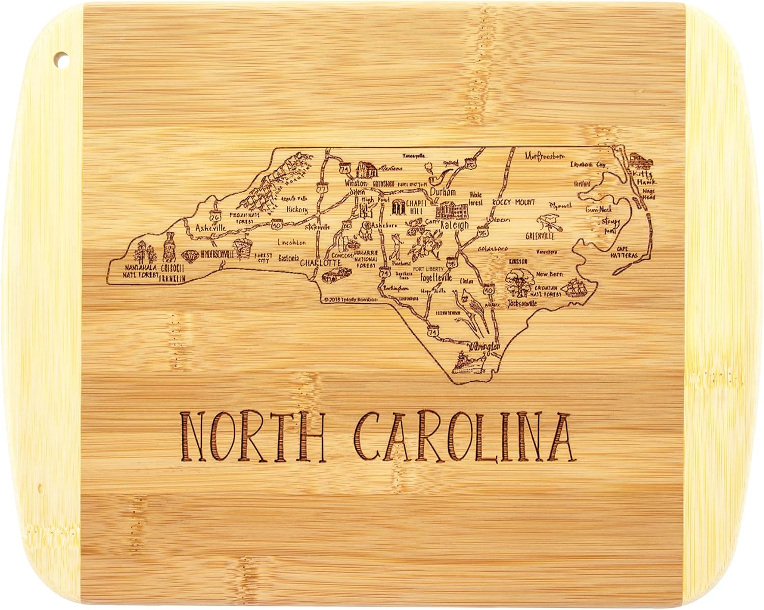 - Savor a slice of The Tar Heel State with this beautifully crafted bamboo cutting board that features engraved artwork highlighting the top towns and attractions in North Carolina