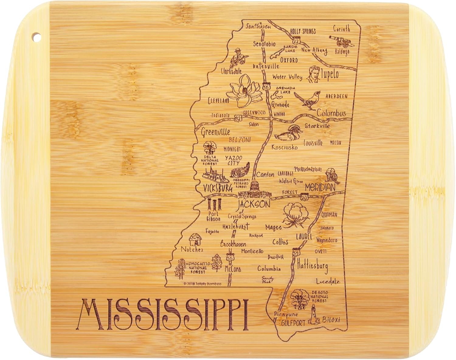 - Savor a slice of The Magnolia State with this beautifully crafted bamboo cutting board that features engraved artwork highlighting the top towns and attractions in Mississippi