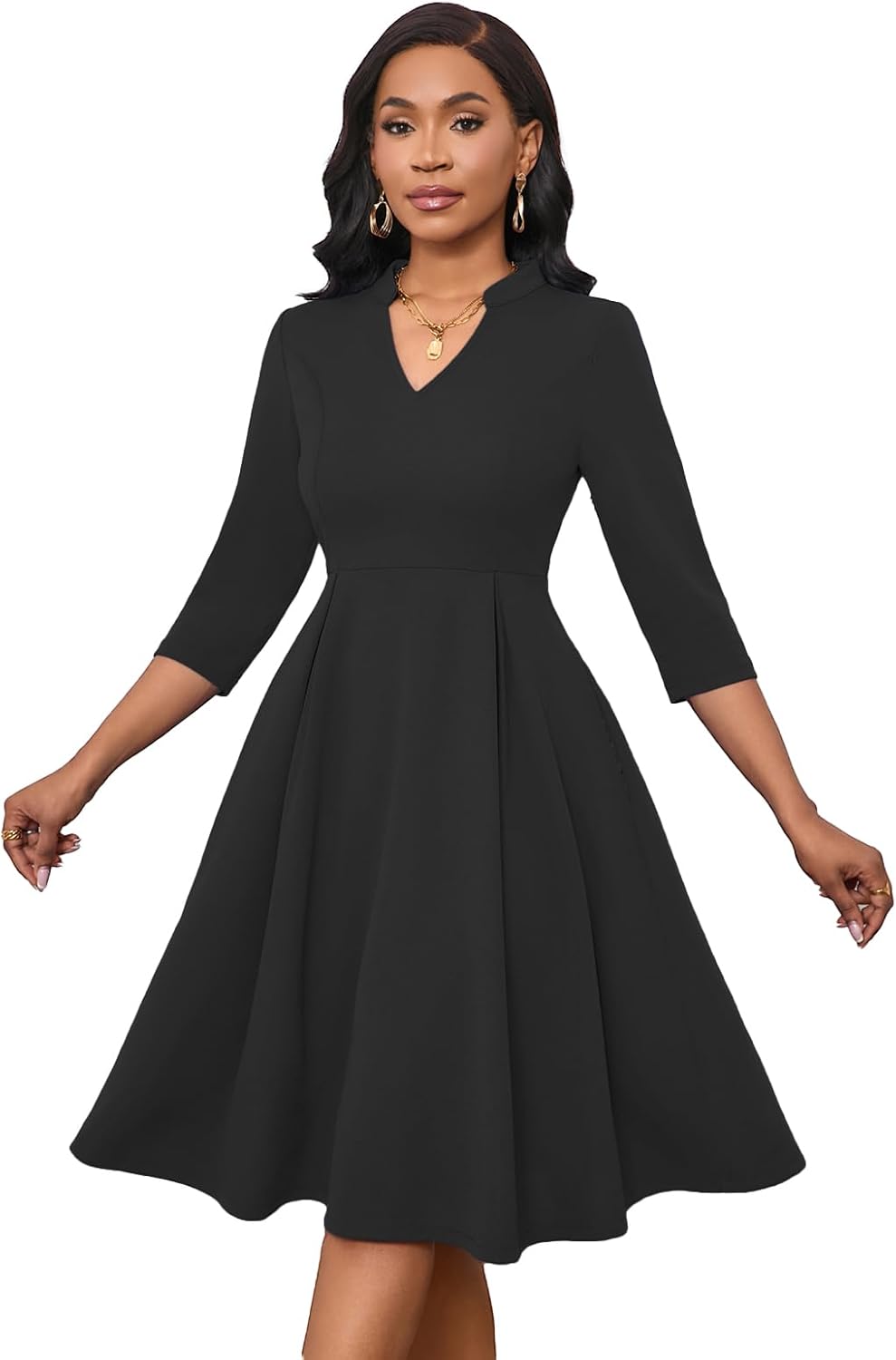 Max2co Midi Dresses for Women Semi Formal Fit and Flare A-Line Swing Dress 3/4 Sleeve Church Cocktail Dress with Pockets