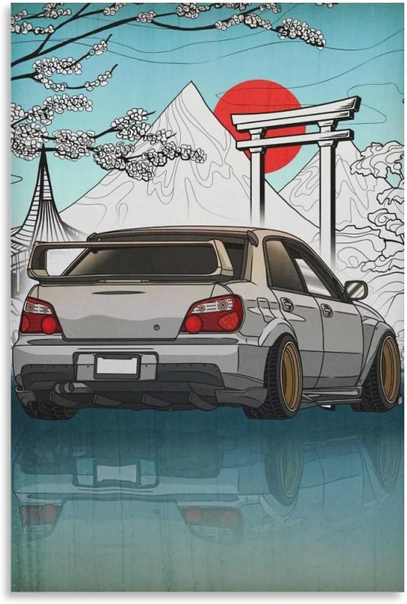 Fbroceh JDM WRX STI Car Poster Silver Gray Vintage Poster Decorative Painting Canvas Wall Art Living Room Posters Bedroom Painting 12x18inch(30x45cm)