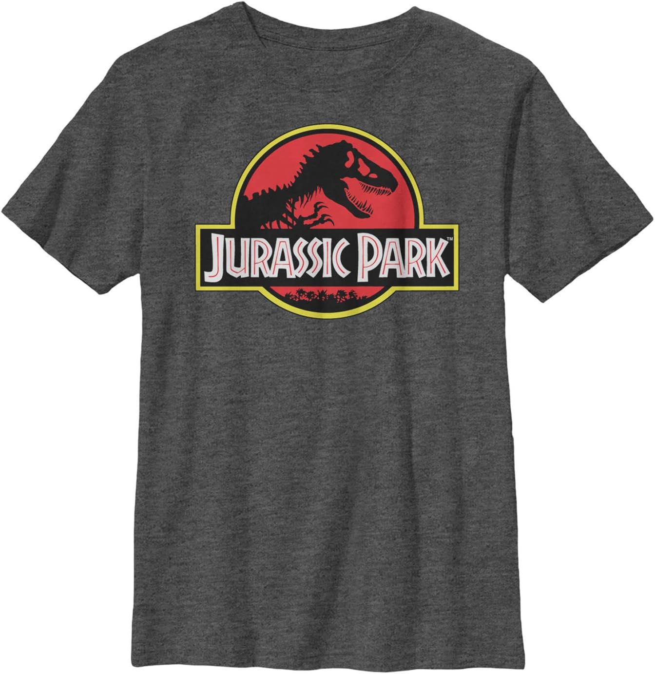 Jurassic Park Boy's Bold T Rex Logo T-Shirt - Charcoal Heather - Medium
