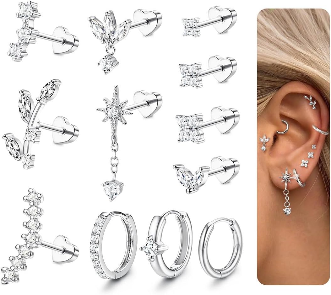 ORAZIO 16 Gauge Cartilage Earrings for Women Flat Back Hypoallergenic Surgical Steel Small Flatback Stud Hoop Cartilage Earring Stack Set Daith Conch Tragus Helix Piercing Jewelry Single PC