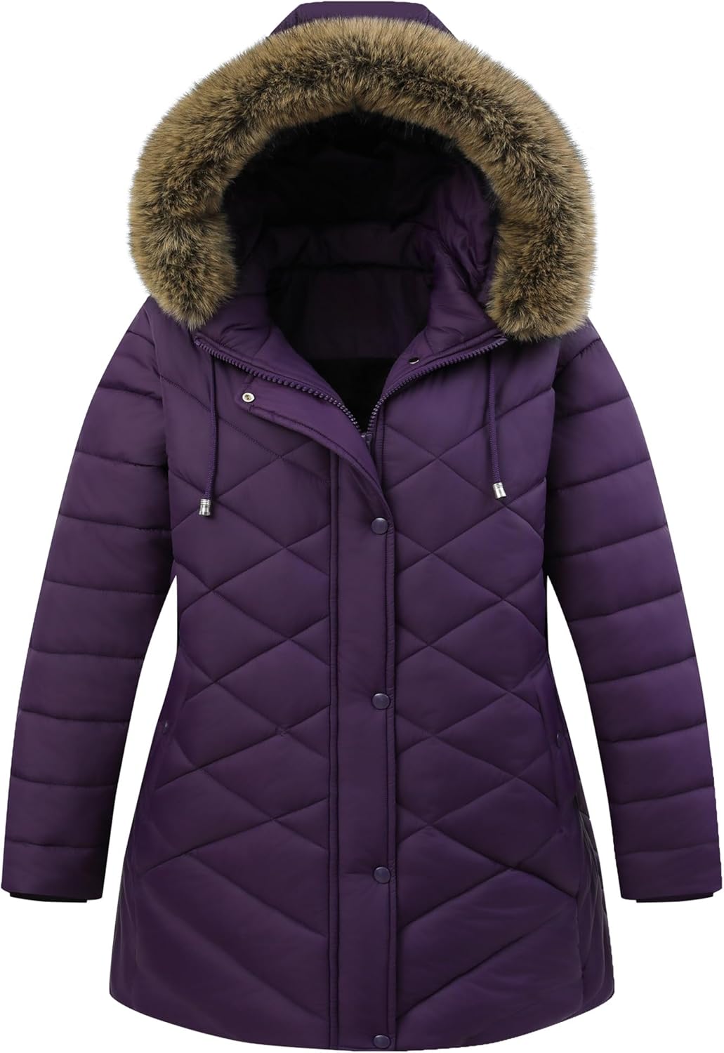 Women’s Plus Size Down Parka Puffer Coat | Detachable Hood, Waterproof, Windproof, Warm for Winter