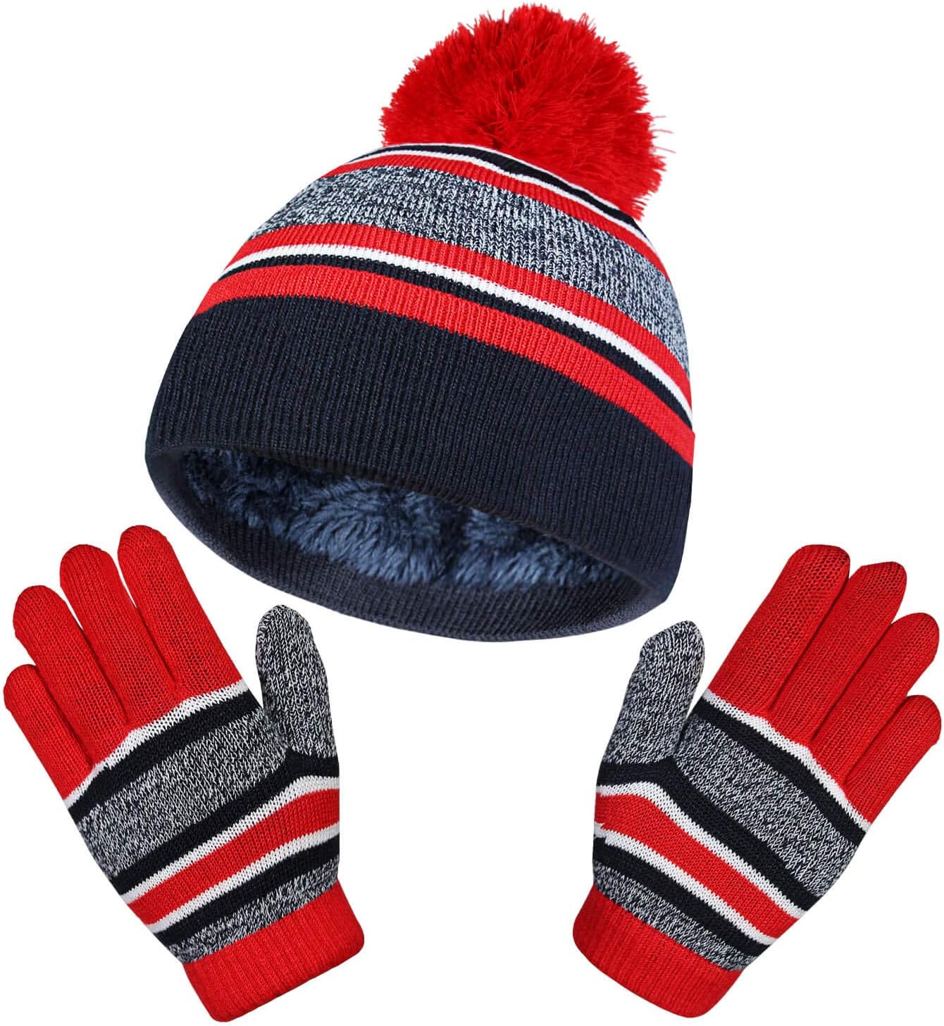 OZERO 2&3Pcs Kids Winter Knit Hat Gloves Scarf Set Warm Fleece Lining Thermal Beanie for 3-8 Year Boys and Girls