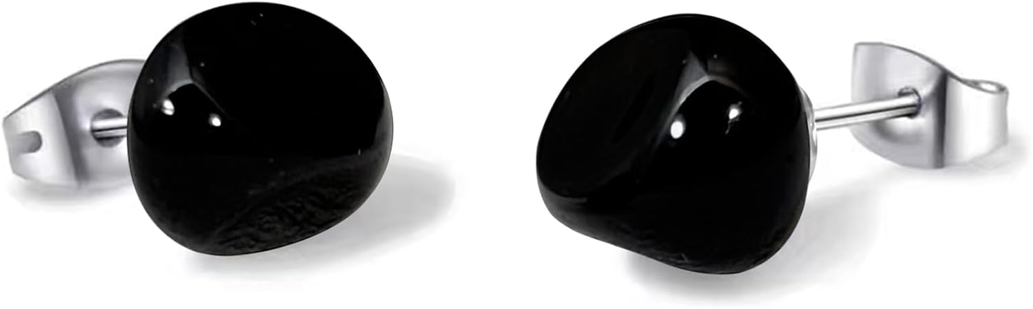 Obsidian Earrings, Natural Black Stone Earrings with Stainless Steel Ear Posts, Black Stud Earrings for Women, Unisex Goth Stud Earrings for Men