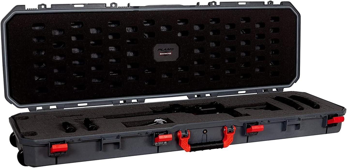 - PLANO RUSTRICTOR ALL WEATHER 2 WHEELED FIREARM CASE: Constructed with rugged, industrial strength to provide durable reliability and protection during travel or standalone storage. Features a watertight, dust proof Dri-Loc seal.
