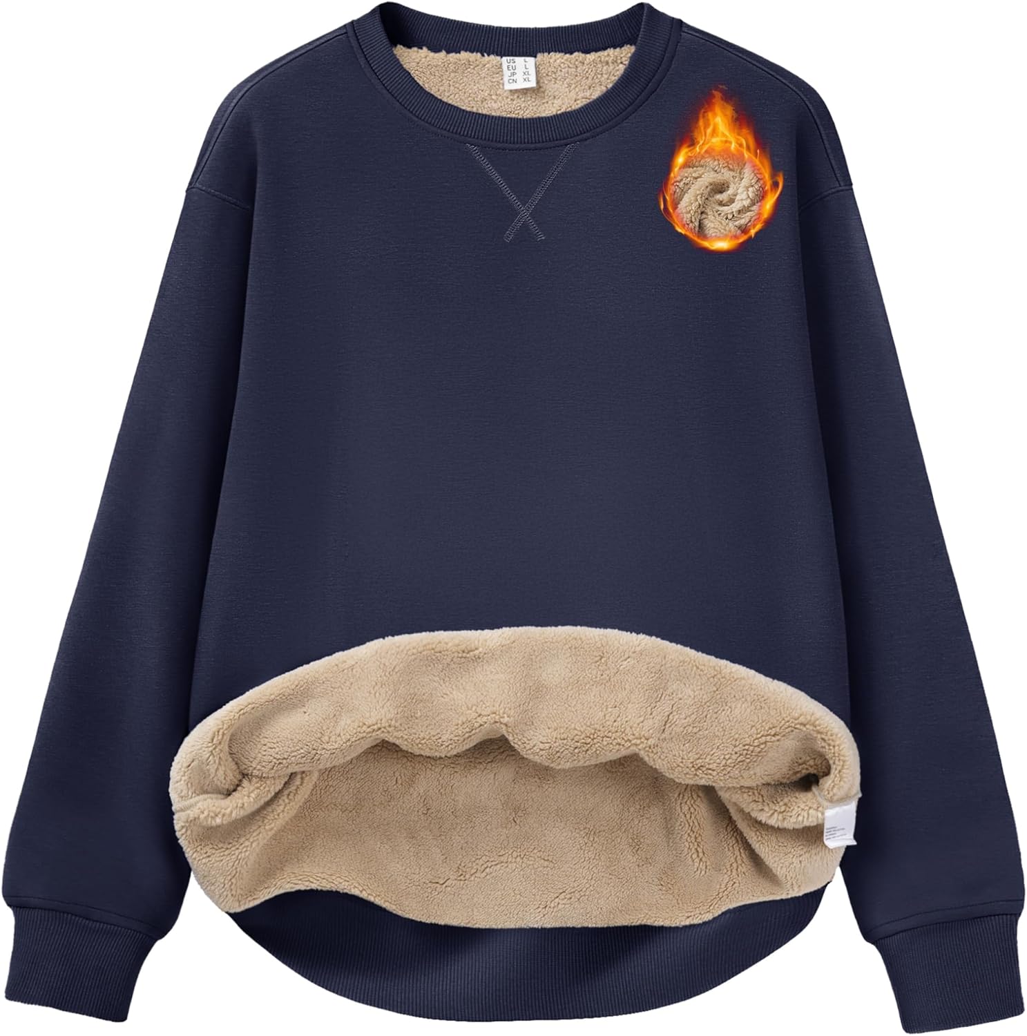 MAGCOMSEN Women's Sherpa Lined Sweatshirts Winter Warm Fleece Crewneck Pullover Thick Sweater Long Sleeve Tops Clothes