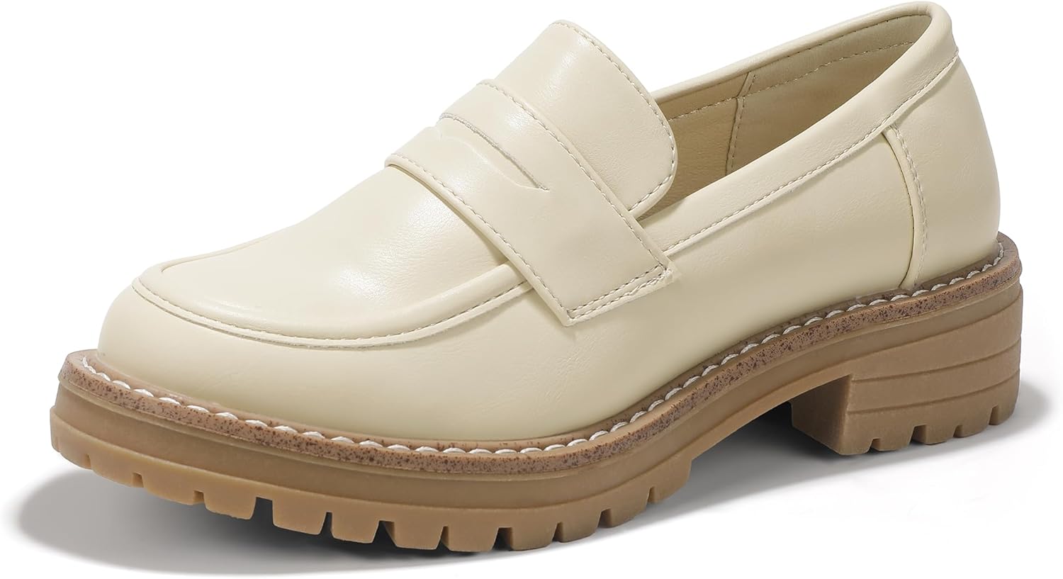 IDIFU IN2 Womens Platform Loafers Chunky Penny Heeled Loafer Lug Sole Slip On Closed Toe Dress Shoes for Women Dressy Comfortable Work Office Business Casual Loafers Shoes