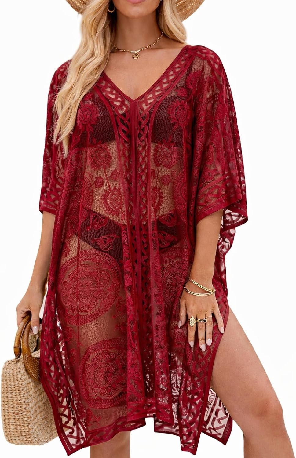 Sexy Elegant Lace Beach Cover Up for Women, Bathing Suit Cover Up, V-Neck Swimsuit Coverup for Poolside, Seaside and Party