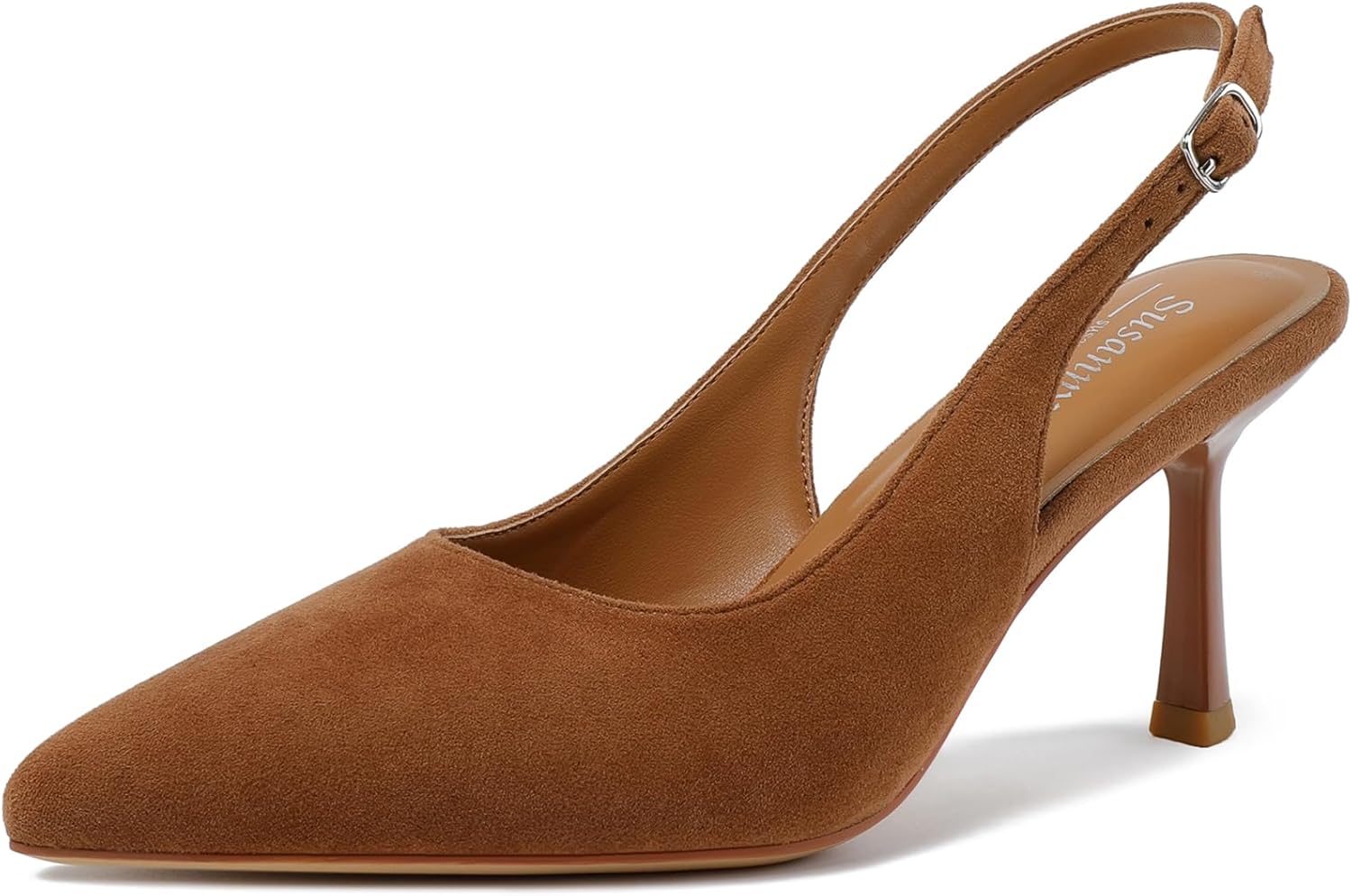 Susanny Slingback Heels for Women Pointed Closed Toe Stiletto Kitten Women's Sexy High Heeled Pumps Stray Casual Dressy Shoes Comfortable Wedding Brida Party Office