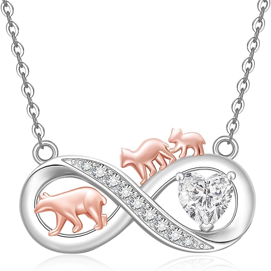 Fenthring Mama Bear Necklace for Women Mom Mothers Day with 2 Cubs Pendant Sterling Silver Infinity Necklaces for Mom Christmas Gifts Jewelry