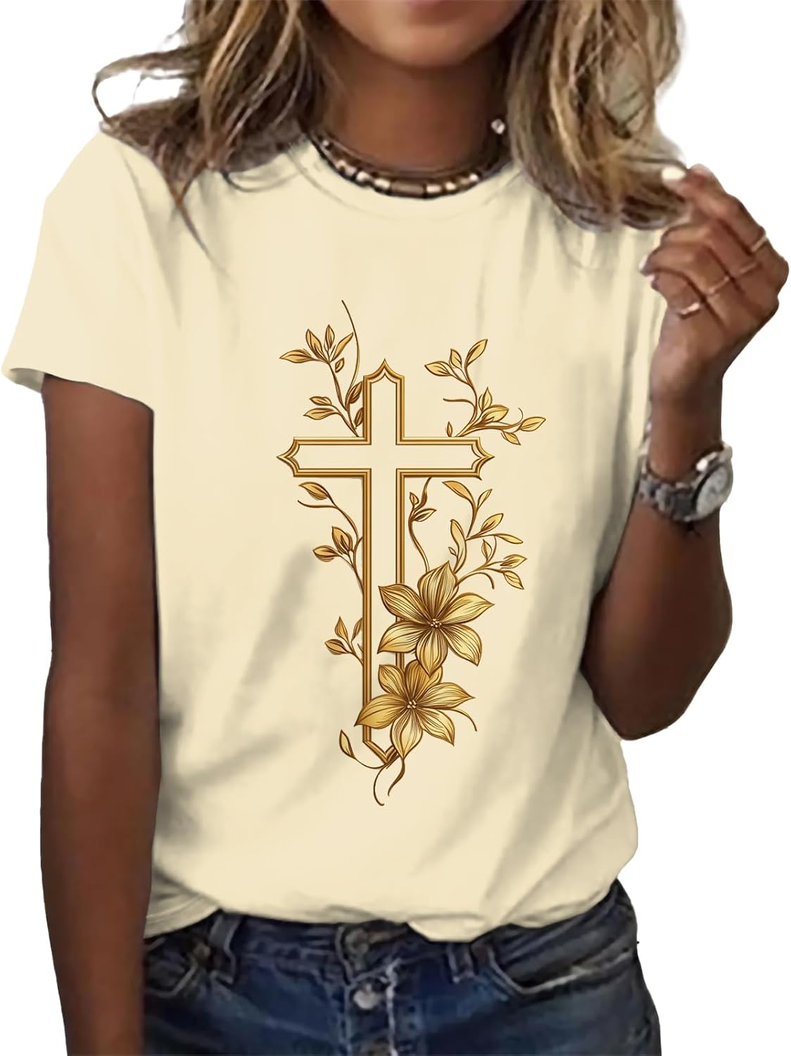 MARSVOVO Jesus Shirts for Women Summer Short Sleeve Casual Graphic Tee Breathable Basic Daily Work Cotton T Shirt Tops
