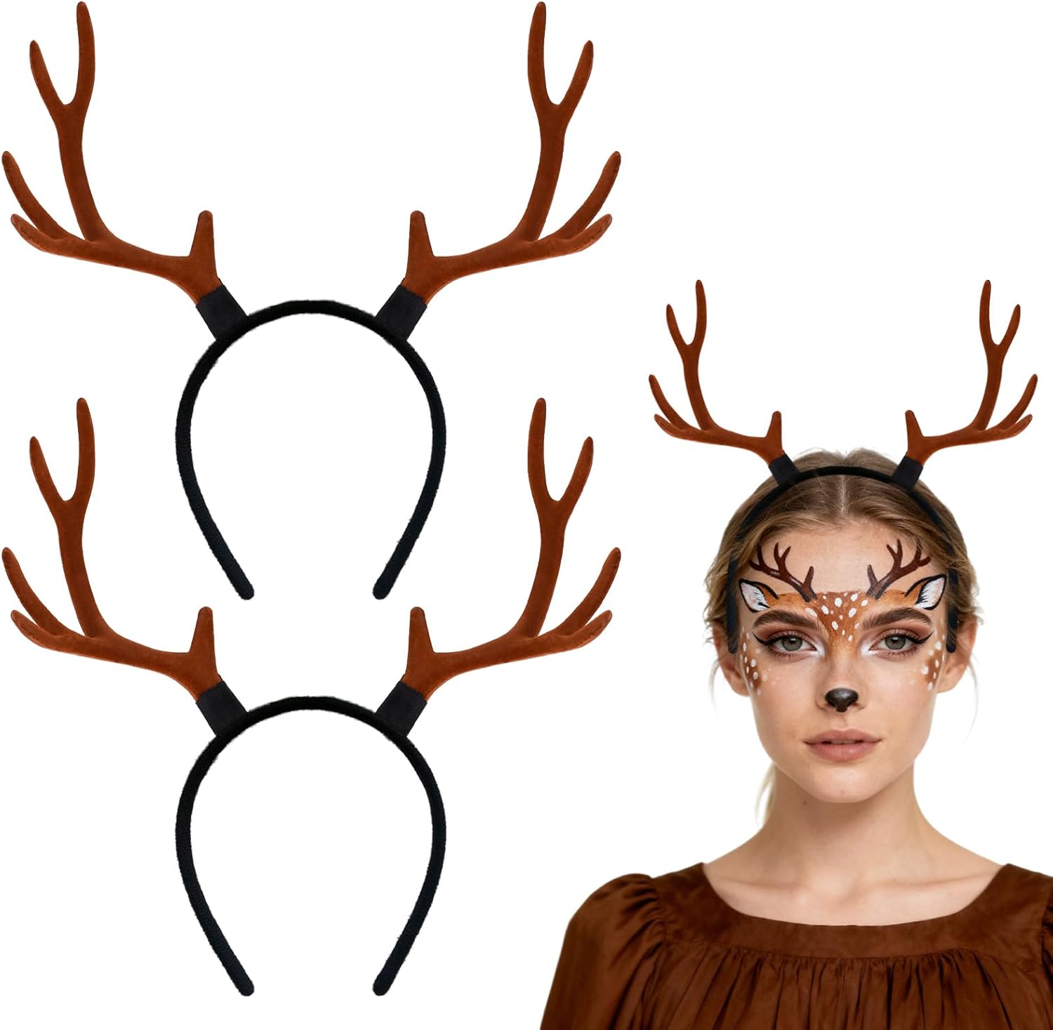 3PCS Deer Antlers Headband with Adorable Deer Ears - Festive Deer Headband for Women Adults - Perfect Deer Costume Accessory for Halloween Christmas Party Cosplay Favors Supplies