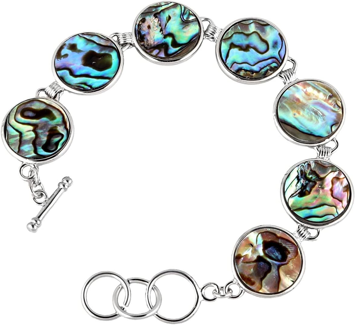 TUMBEELLUWA Natural Abalone Shell Bracelet for Unisex, Rainbow Sea Shell Bangle with Adjustable Link