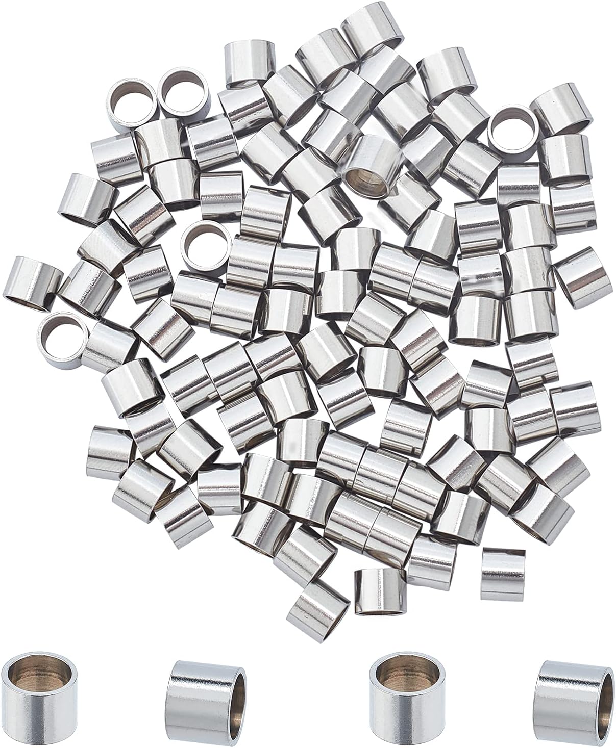 - Column Beads: These European beads in stainless steel color, about 100pcs in total, about 6mm in diameter, 5mm thick, Hole: 5mm,they are packaged in a plastic box, easy to store and carry, perfect for your DIY jewelry projects.