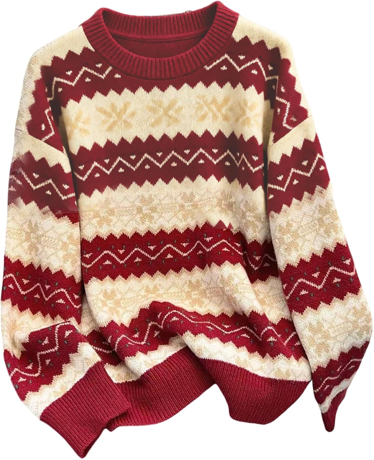 MakeMeChic Women's Christmas Sweater Striped Long Sleeve Knit Pullover Vintage Sweater