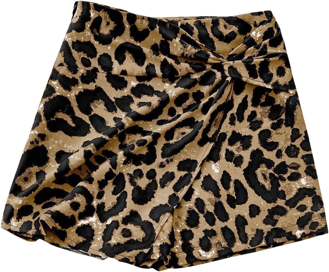 Floerns Women's Leopard Twist Knot Skorts Mid Waist Cheetah Wrap Skirt Shorts