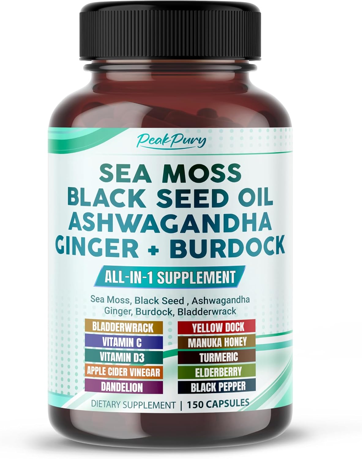 - Max-Potency: PeakPury Sea Moss capsules deliver a high-quality and potent blend for optimal support. With 150 capsules per bottle, it lasts for 5 months, providing a convenient and effective wellness boost.