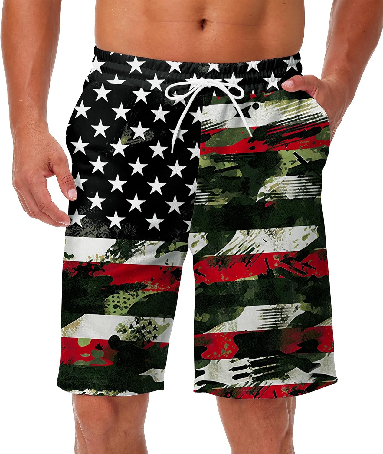 AOBUTE Men's 4th of July Shorts American Flag Patriotic Shorts with Pockets