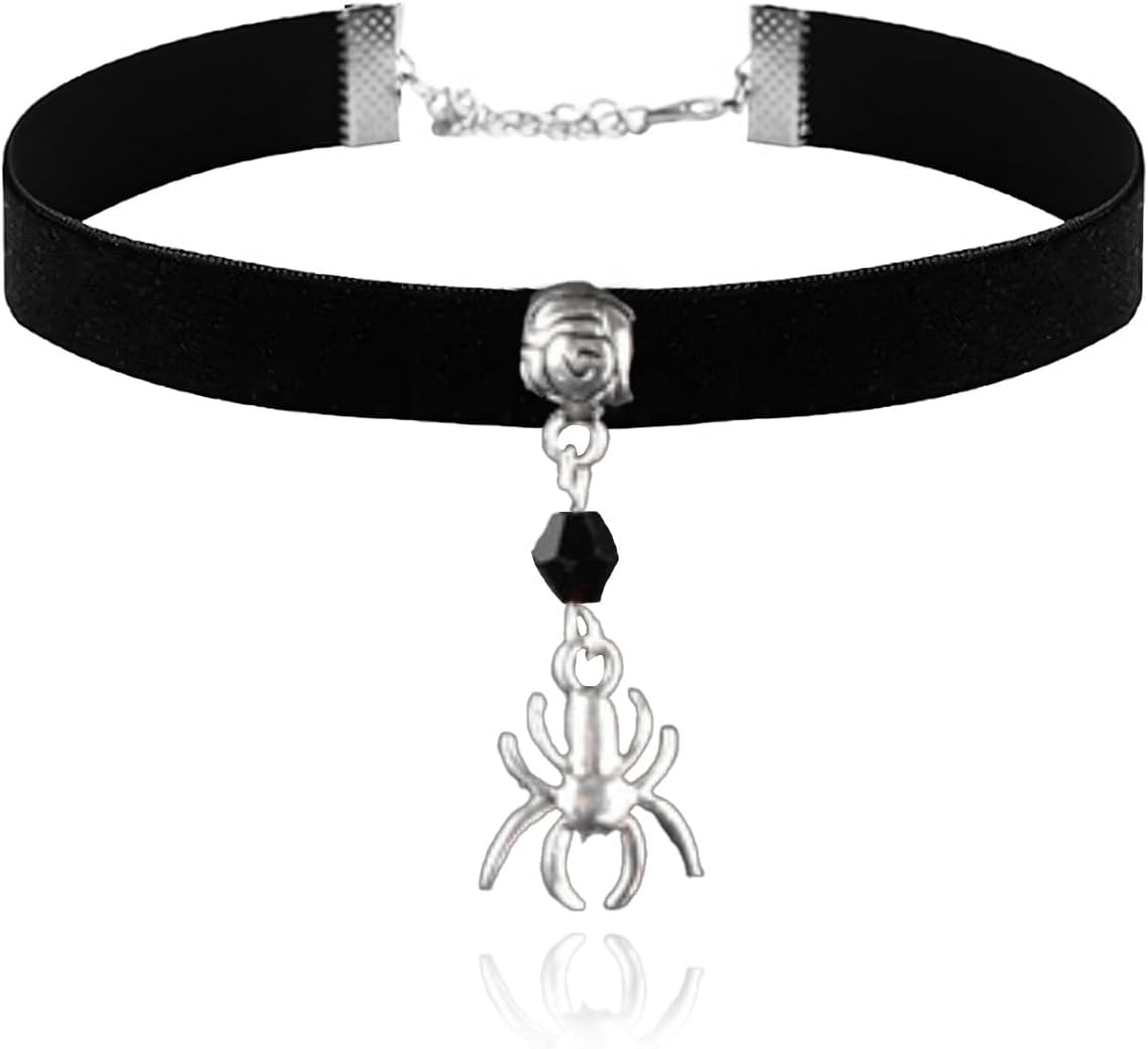 Black Choker Necklaces for Women Halloween Spider Charm Necklace Vintage Necklace Goth Accessories Gothic Jewelry