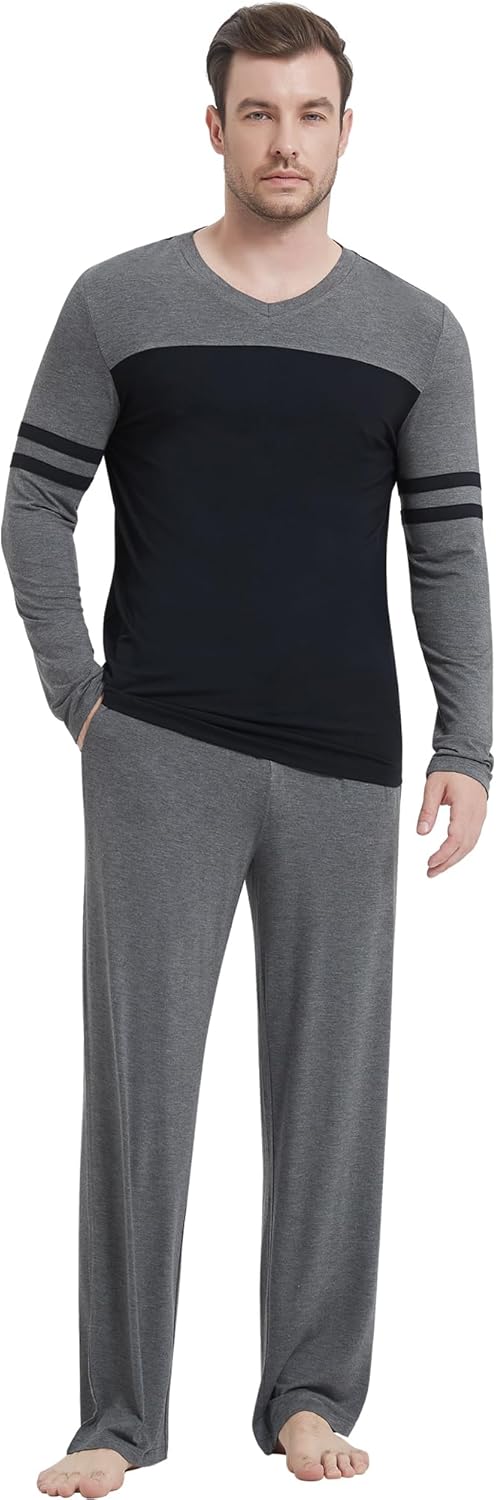 NACHILA Men's Pajamas-Viscose Made from Bamboo, Long Sleeve Pajama Shirt Soft Pants Sleepwear Comfy Pjs Set with Pockets
