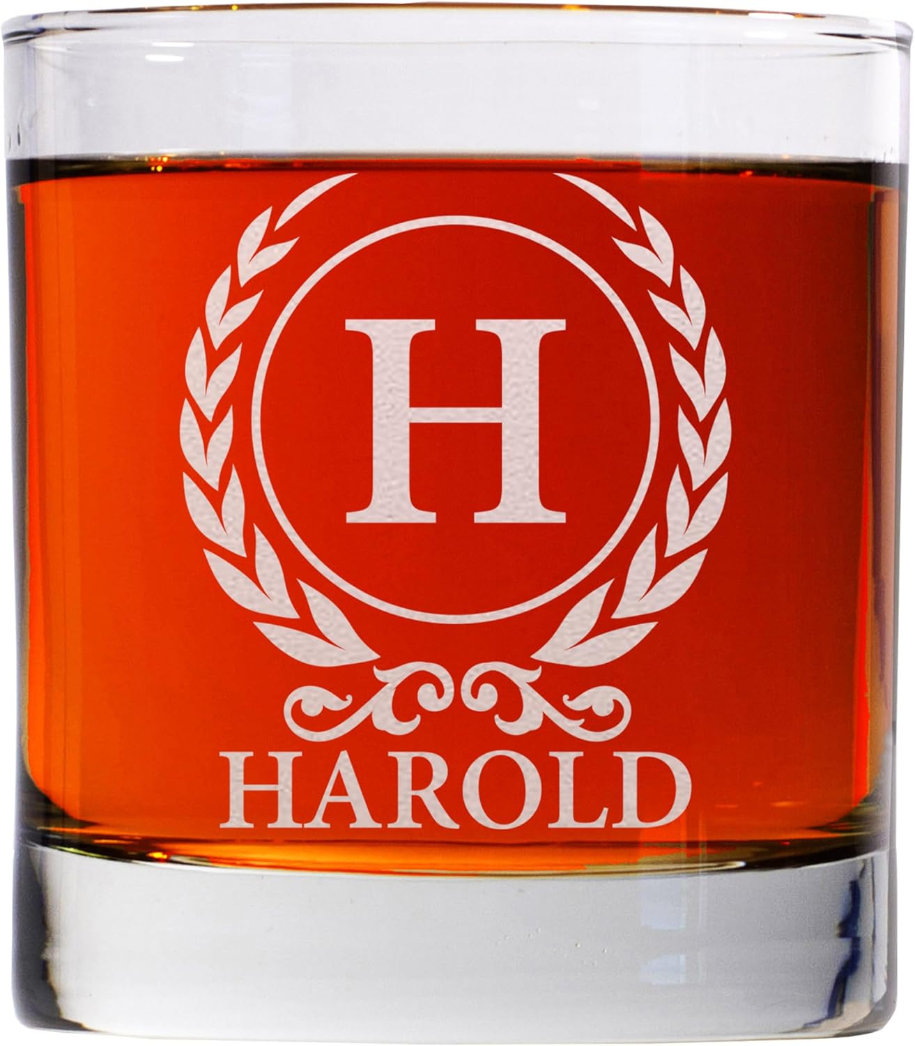 Personalized Whiskey Glasses w/Name & Initial, 5 Designs - 11 oz, Bourbon Monogrammed Rocks Glasses for Groomsman Gifts, Gifts for Best Man, Grommsmen Gift Ideas - Single